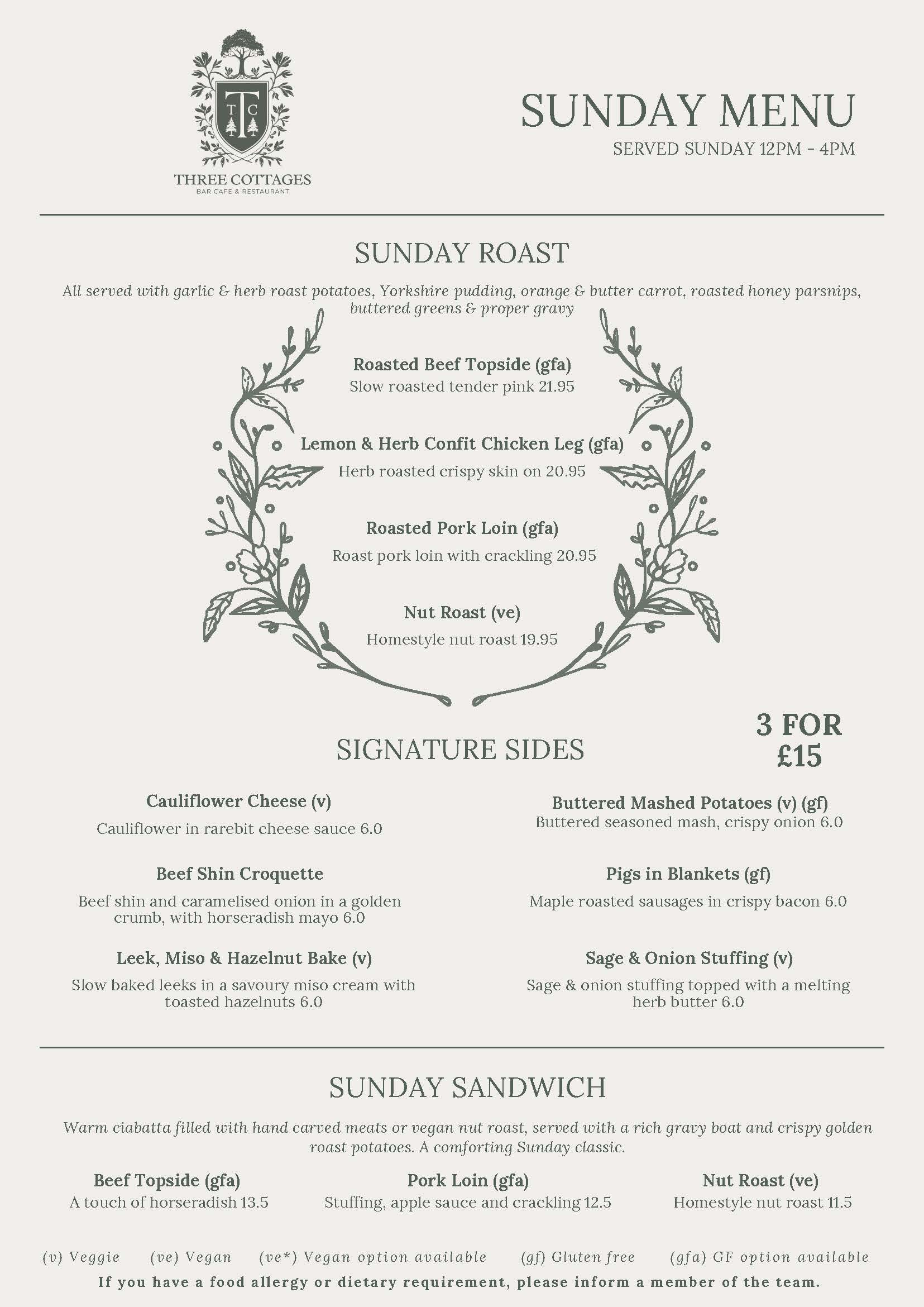 - Sunday roast bookings are only for our Sunday roast menu.